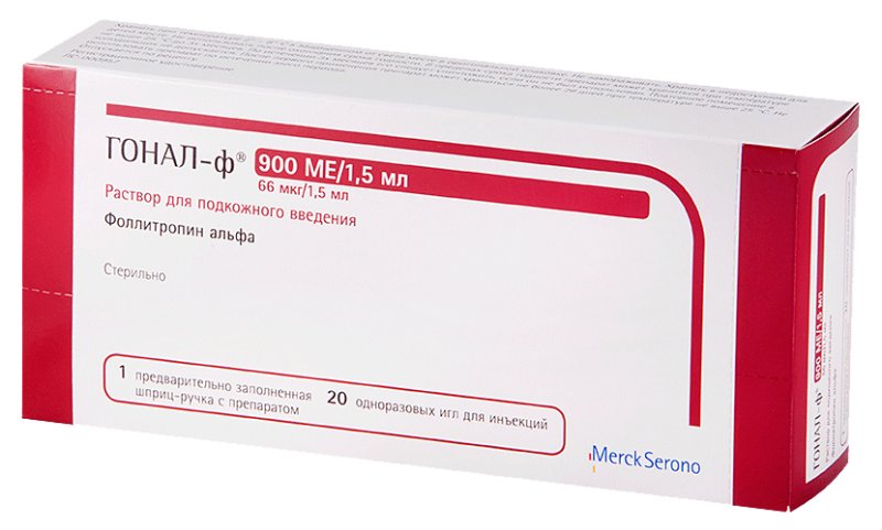 Способ применения и дозировка: Препарат ГОНАЛ-ф® предназначен для подкожного введения. Лечение препаратом следует начинать под контролем врача-специалиста, имеющего опыт лечения бесплодия. Женщины. Ановуляпия (включая синдром поликистозных яичников) у женщин в случае неэффективности терапии кломифеном. ГОНАЛ-ф® следует назначать курсом в виде ежедневных инъекций. Лечение начинают в первые 7 дней цикла. Стимуляцию проводят под контролем УЗИ (измеряют размеры фолликулов) и или концентрации эстрогенов. Стимуляцию начинают с ежедневной дозы 75- 150 ME, увеличивая на 37,5 - 75 ME через 7-14 дней до получения требуемого эффекта. Максимальная доза ежедневной инъекции не должна превышать 225 ME. При отсутствии положительной динамики после 4 недель лечение прекращают. В следующем цикле стимуляцию следует начинать с более высокой дозы. После достижения оптимальных размеров фолликулов через 24-48 часов после последней инъекции ГОНАЛ-ф® однократно вводят 250 мкг р-чХГ(рекомбинантный человеческий хорионический гонадотропин) или 5000 -10 000 ME чХГ (человеческий хорионический гонадотропин). В день инъекции чХГ и на следующий день пациентке рекомендуют половой контакт. В качестве альтернативы может быть проведена внутриматочная инсеминация. Контролируемая овариальная гиперстимуляция в программах вспомогательных репродуктивных технологий. ГОНАЛ-ф® назначают ежедневно по 150-225 ME, начиная со 2-3 дня цикла. Ежедневная доза может варьировать, но обычно не превышает 450 ME. Лечение продолжают до достижения фолликулами адекватных размеров по данным УЗИ (5-20 дней, в среднем к 10-му дню лечения). Через 24-48 часов после последней инъекции ГОНАЛ-ф® однократно вводят 250 мкг р-чХГ или 5000-10 000 ME чХГ для индукции окончательного созревания фолликулов. Для подавления эндогенного выброса ЛГ и поддержания его на низком уровне используют агонист или антогонист гонадотропин-рилизинг гормона. Овариальная стимуляция у женщин с тяжелым дефицитом фолликулостимулируюшего и лютеинизируюшего гормонов (в комбинации с препаратами лютеинизируюшего гормона). Доза и схема лечения подбирается врачом индивидуально. Обычно прапарат назначают ежедневно подкожно в течение до 5 недель одновременно с лютеинизирующим гормоном. Лечение начинают с дозы 75 -150 ME одновременно с лутропином альфа в дозе 75 ME. В случае необходимости доза ГОНАЛ-ф® может быть увеличена на 37,5 - 75 ME каждые 7-14 дней. При отсутствии адекватного ответа на стимуляцию в течение 5 недель терапию следует прекратить и возобновить уже в новом цикле в более высокой дозе. После достижения оптимальных размеров фолликула/фолликулов через 24-48 часов после последней инъекции ГОНАЛ-ф® и лутропина альфа однократно вводят 250 мкг р-чХГ или 5000 -10 000 ME чХГ. В день инъекции чХГ и на следующий день пациентке рекомендуют половой контакт. В качестве альтернативы может быть проведена внутриматочная инсеминация. В случае чрезмерного ответа яичников на стимуляцию, лечение фоллитропином альфа следует прекратить и отменить назначение чХГ. Стимуляцию повторяют в следующем цикле, начиная с более низкой по сравнению с предыдущим циклом дозы ГОНАЛ-ф®. Мужчины. Стимуляция сперматогенеза при гипогонадотропном гипогонадизме у мужчин (в комбинации с хорионическим гонадотропином). Обычно назначают ГОНАЛ-ф® в дозе 150 ME три раза в неделю в течение не менее 4-х меся