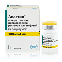 АВАСТИН (МНН Бевацизумаб) 100мг/4мл конц д/приг р-ра д/инф.N1 фл. 17 500руб.